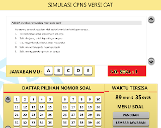 Selain membaca hukum anda juga bisa mempersiapkan diri dengan mempelajari kisi-kisi soal tes CPNS 2018 dan contoh-contoh soal seleksi CPNS tahun 2018. Soal-soal latihan memang tidak sama bahkan jauh dari soal yang sebenarnya, tetapi minimal sanggup dipakai sebagai materi untuk mengukur kemampuan diri. Soal latihan CPNS 2018 menyerupai soal Cat BKn mungkin juga hanya sekedar melatih cara mengerjakan soal melalui computer. Mengapa perlu berlatih ? alasannya yakni menurut pengalaman soal CPNS tahun 2018 dipastikan dikerjakan secara online atau dikenal dengan istilah CAT