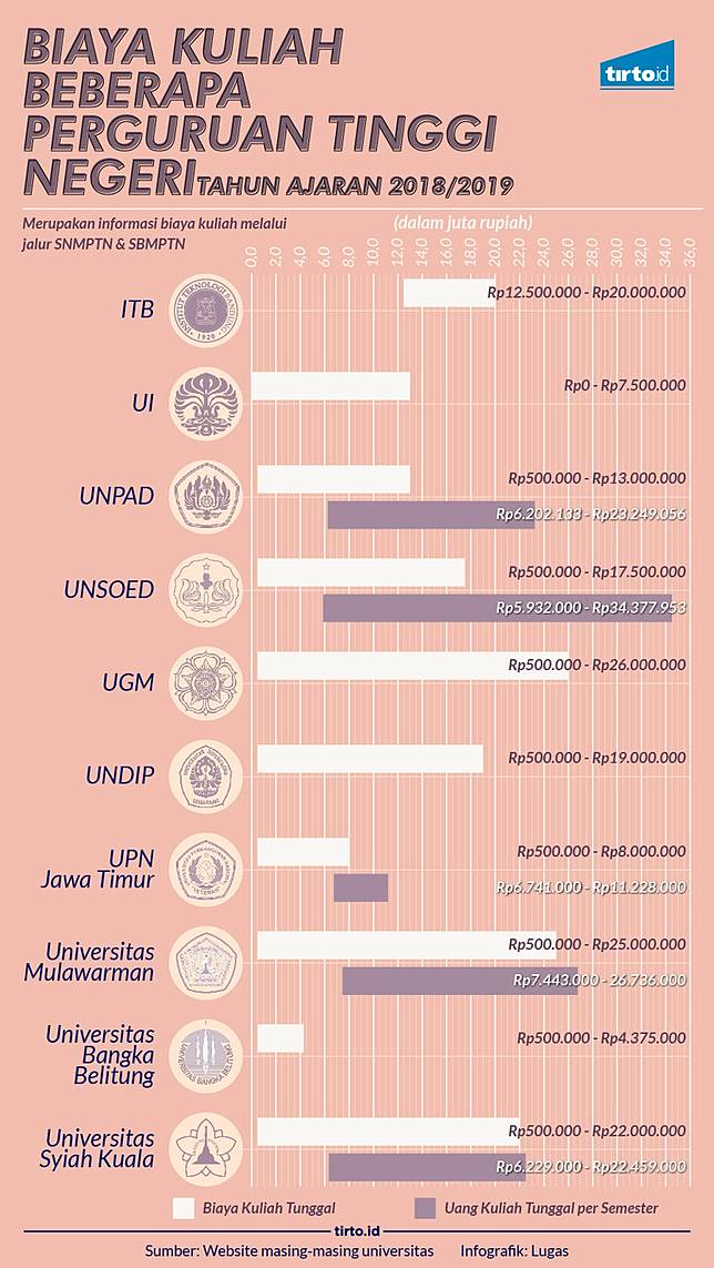 Biaya Kuliah Beberapa Perguruan Tinggi Negeri Sumber : today.line.me